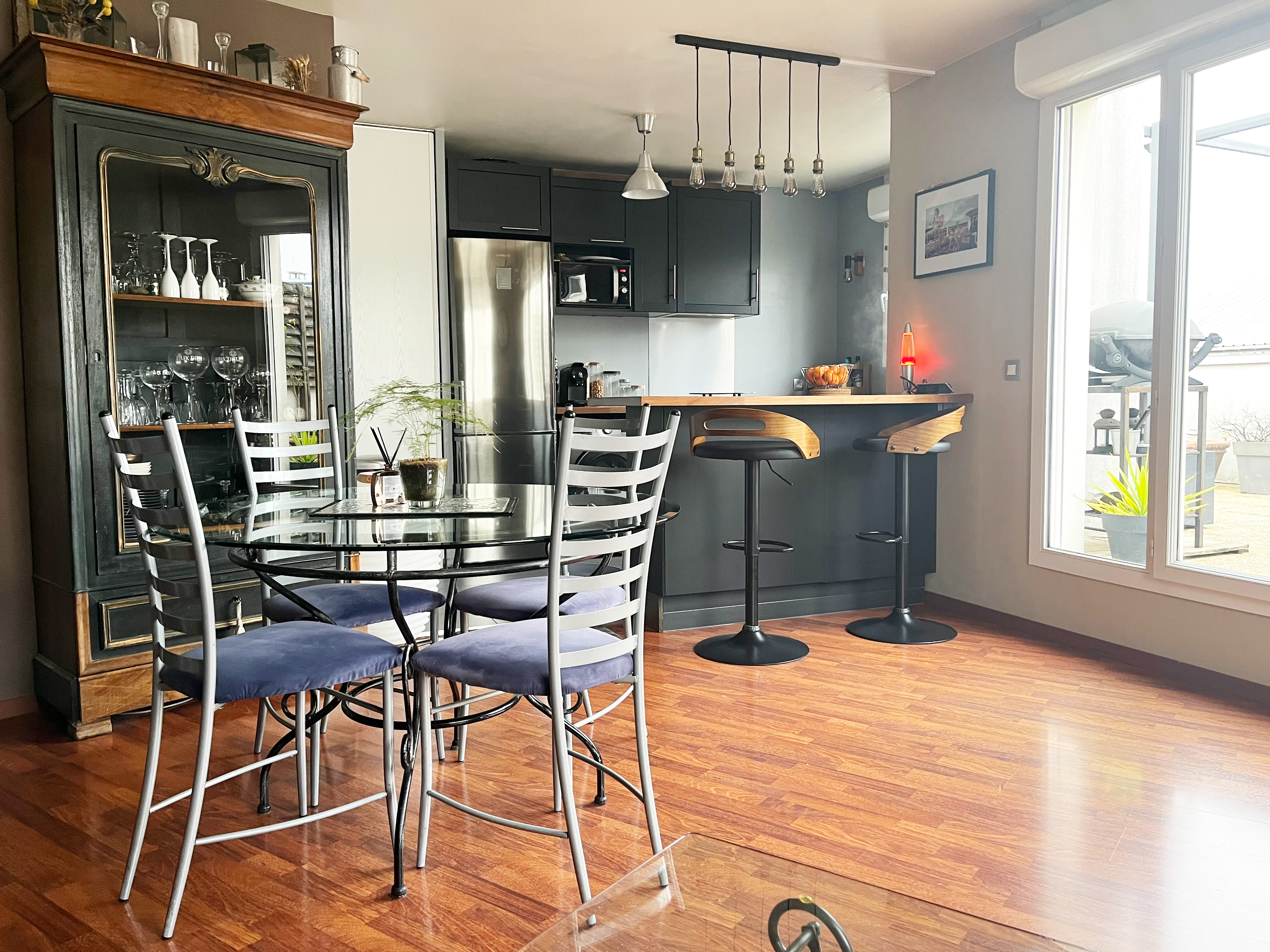 Cuisine, Séjour, Une chambre, Une salle de bain, La terrasse.
